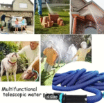 Expendable rubber garden hope with high pressure spray nuzzle .